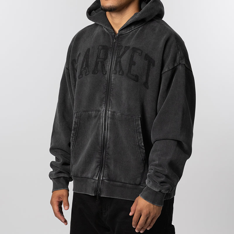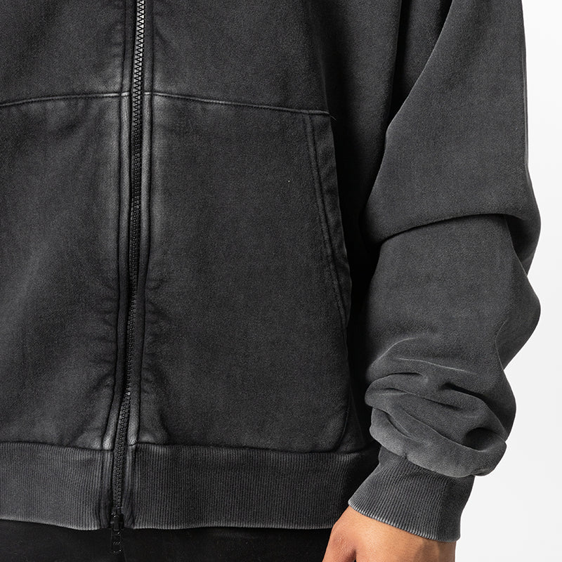 Shadow Arc Full Zip Hoodie - Washed Black
